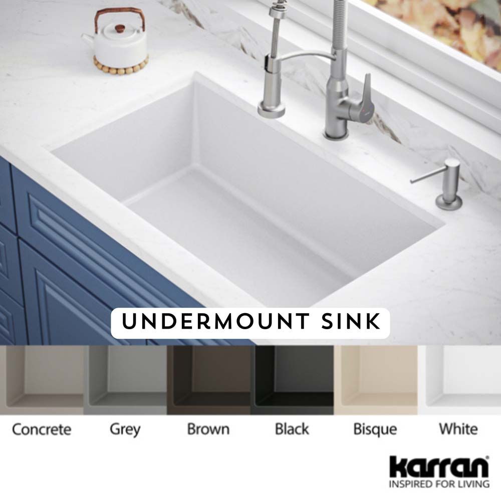 Complete your countertop with the perfect sink, undermounted or drop-in! We work exclusively with KARRAN brand sinks to provide the edge stainless steel, acrylic and quartz seamless series sinks to our laminate countertops. All KARRAN sinks can be mounted to quartz and solid surface countertops.